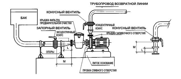 La conduite d'aspiration est disposée à partir de tuyaux métalliques pour raccords à bride ou à douille.