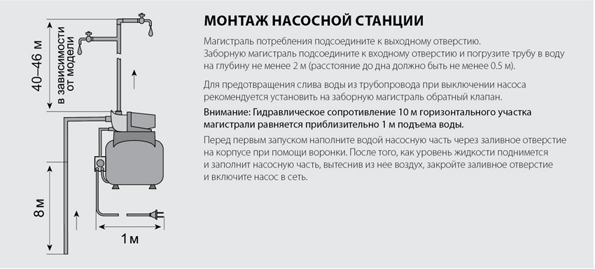 La pompe est généralement en métal et est conçue pour transférer une partie de l'énergie à l'eau. Et comme il est en fer et qu'il est fait de telle manière que, par exemple, 1 cube d'eau par heure peut être élevé de 100 mètres, peu lui importe sur quelle section de cette centaine de mètres se tenir, soit aspirez ce cube d'une profondeur de 100 mètres, ou éloignez-le de vous jusqu'à une hauteur de 100 mètres, ou aspirez 50 puis poussez 50. Il est fait de fer et s'en fout, sa tâche est de 1 cube, 1 heure, 100 mètres.