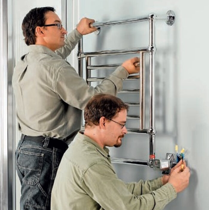 Plus pratiques à cet égard, les modèles électriques peuvent être placés sur n'importe quel mur de la salle de bain, à l'exception de l'espace autour des sources d'eau. Mais trouver de l'espace libre pour une bobine supplémentaire n'est pas toujours possible.