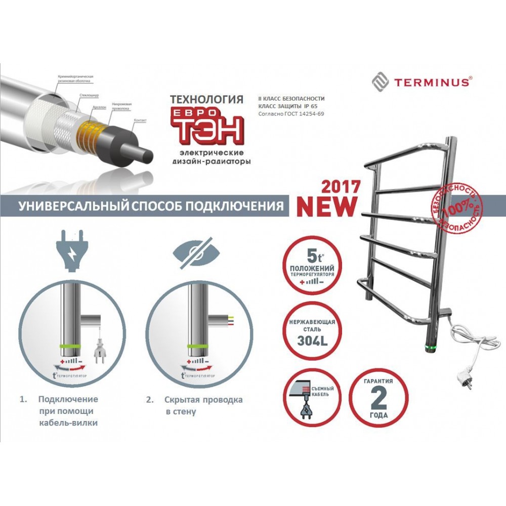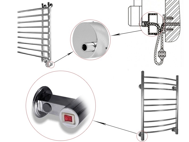 Combiné est un porte-serviettes chauffant à l'eau, dont l'eau est chauffée à l'aide d'un élément chauffant. Au lieu de l'eau, un autre caloporteur peut être utilisé: huile, antigel. De tels dispositifs sont moins économiques. Si le support fuit, l'élément chauffant tombe en panne. Le sèche-serviettes électrique de type sec est généralement en acier. Un câble chauffant est posé sur toute la longueur à l'intérieur. A l'extérieur, il est émaillé ou chromé. La température de la surface extérieure ne dépasse pas 55°C pour éviter les brûlures en cas de contact accidentel. De tels sèche-serviettes sont considérés comme économiques, car leur consommation d'énergie est comparable à la puissance d'une lampe électrique classique. Vous pouvez les garder tout le temps. Le maintien de la température fournira un thermostat. Ils sont fiables, sûrs et ont une durée de vie allant jusqu'à 10 ans. L'appareil sélectionné peut être installé dans n'importe quel endroit pratique de la salle de bain ou d'une autre pièce.