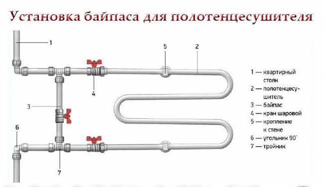 Si des robinets et des raccords sont utilisés pour connecter le sèche-serviettes, ou si le nouveau radiateur est composé de tuyaux d'un diamètre inférieur à celui de la colonne montante, un by-pass doit être utilisé.Étant, en fait, une solution de contournement pour le liquide de refroidissement, ce dispositif le plus simple permet :
