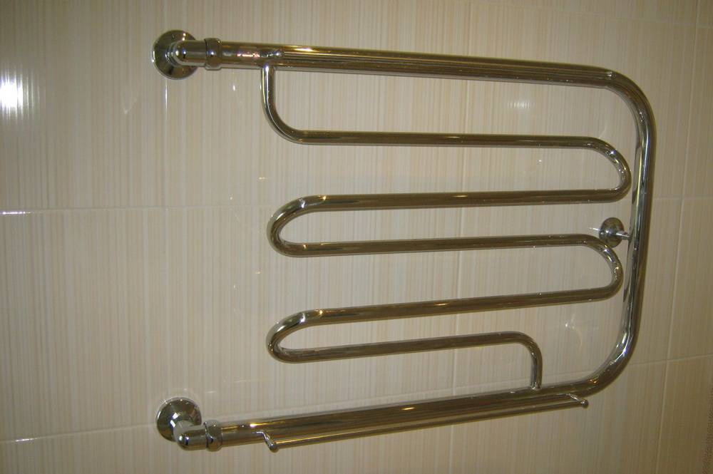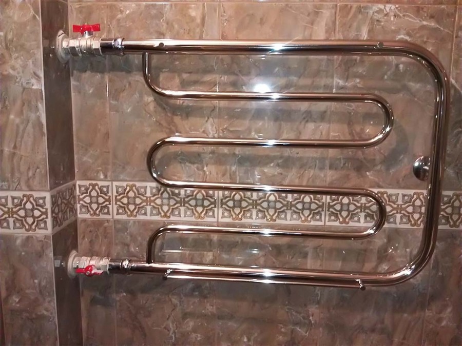 Mais une telle dépendance se heurte au fait qu'en cas d'arrêt de l'eau chaude, le serpentin se refroidit, cessant de remplir la fonction qui lui est assignée. Entre les saisons de chauffage, il sert uniquement de porte-serviettes et de décoration décorative pour la pièce.