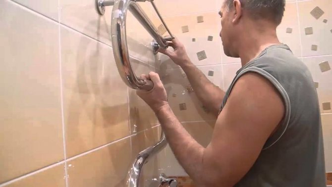 Nous fixons le porte-serviettes chauffant sur trois ou quatre vis à l'aide de chevilles et de vis en plastique.