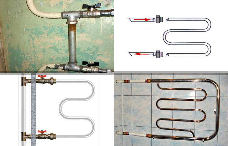 Avec l'avènement des sèche-serviettes en inox plus esthétiques, il est devenu nécessaire de remplacer les anciens appareils en gênant le moins possible le fonctionnement du système de chauffage. Une situation idéale peut être envisagée lorsque le diamètre intérieur de la colonne montante est égal à la section transversale du contour du nouveau poste. Bien sûr, si le dispositif de chauffage est coupé à l'aide de raccords et d'entraînements du diamètre approprié.