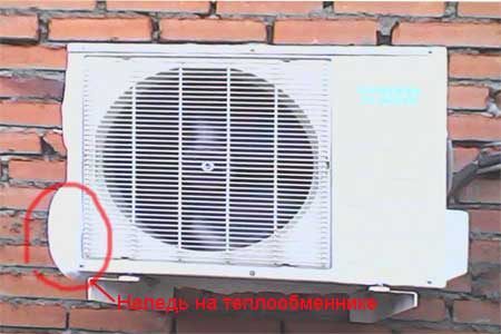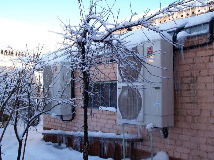 Il serait utile d'installer une visière sur l'unité extérieure. Au printemps, l'eau tombera des glaçons sur le bloc, où elle gèlera. Cela le fera geler.