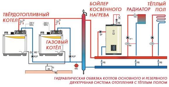 Le principal aspect positif de l'installation de deux chaudières dans un système de chauffage est le soutien continu de la chaleur dans la pièce. Une chaudière à gaz est pratique car elle n'a pas besoin d'être constamment entretenue. Mais en cas d'arrêt d'urgence ou pour faire des économies, une chaudière à bois deviendra un complément de chauffage indispensable.