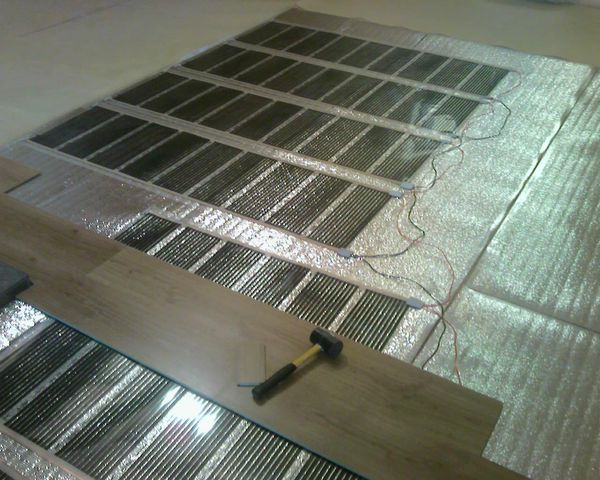 Chacune de ces toiles est reliée par deux conducteurs. Après installation du câblage et raccordement au régulateur, vérifier le bon fonctionnement du plancher chauffant. En même temps, la température est réglée, elle doit être suffisamment élevée pour un chauffage confortable de la pièce, mais ne pas dépasser le seuil de résistance du tapis.