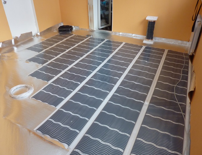 Au stade final, les radiateurs en graphite sont recouverts d'un film plastique, qui est fixé avec des agrafes autour du périmètre de la pièce. Afin de pouvoir poser la moquette, remplacez les panneaux de fibres de bois ou le linoléum.