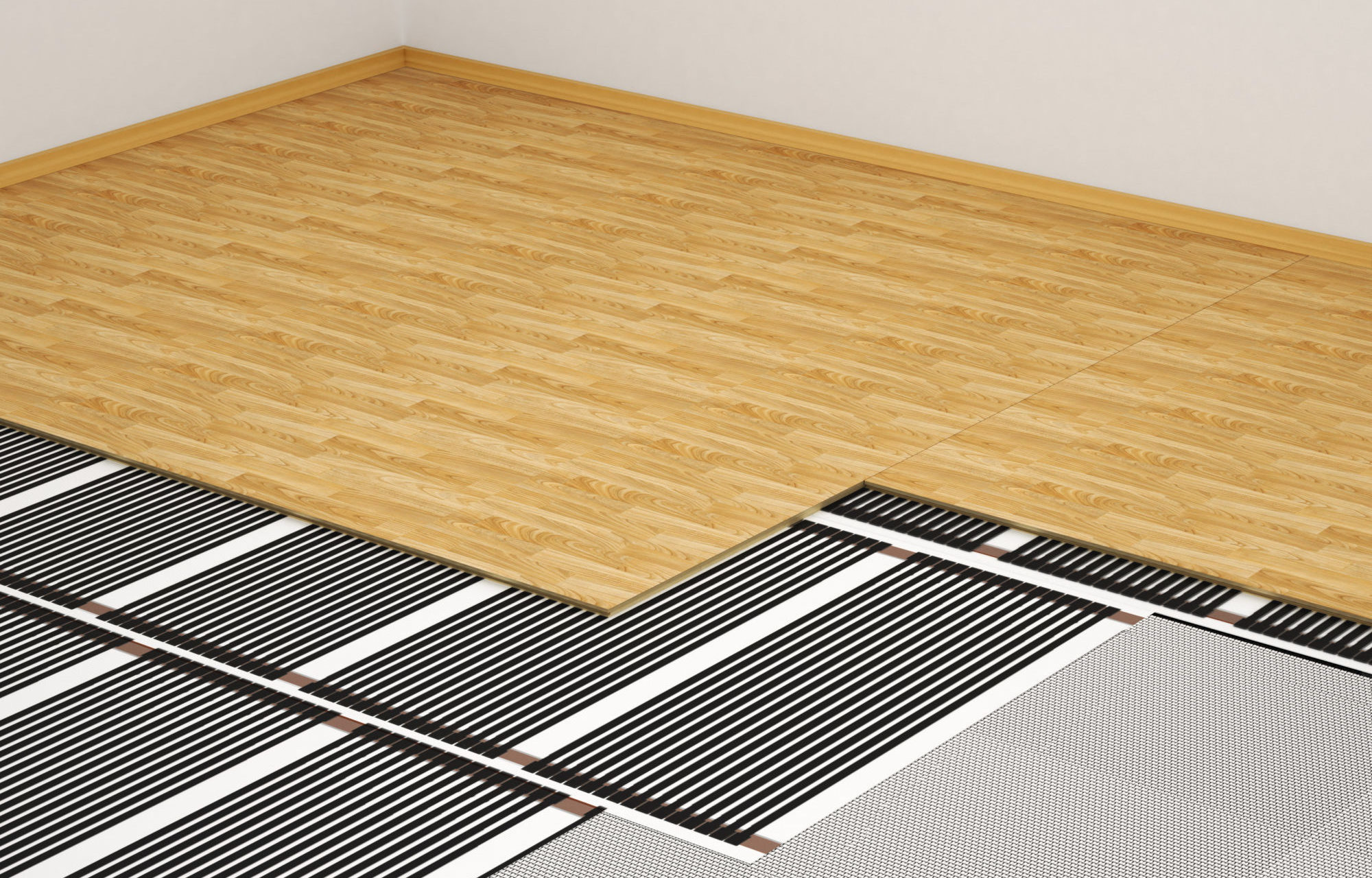 Le film chauffant peut être posé sur des sols en béton et en bois sous :