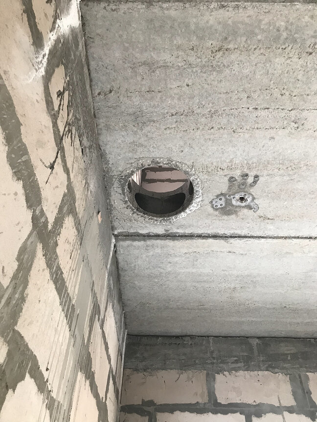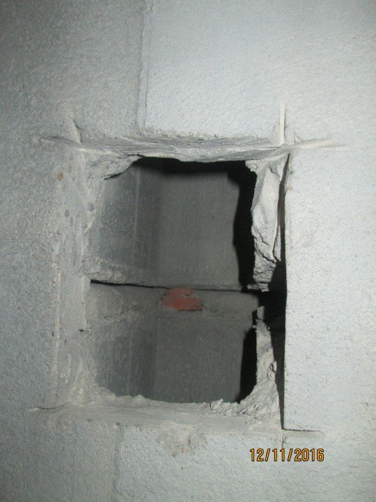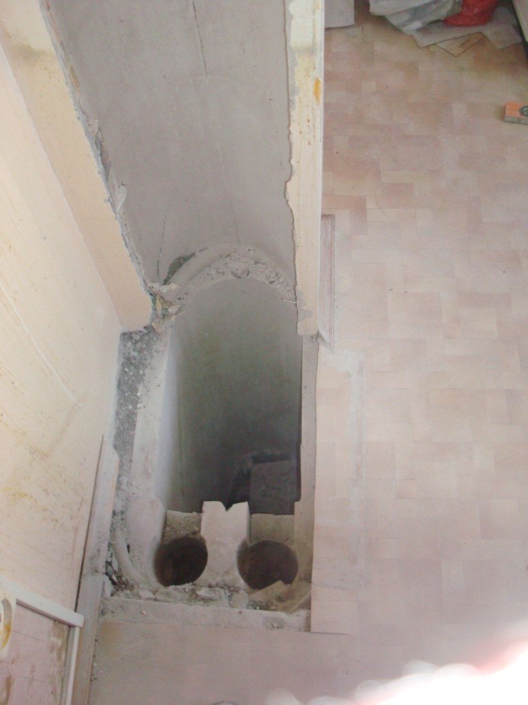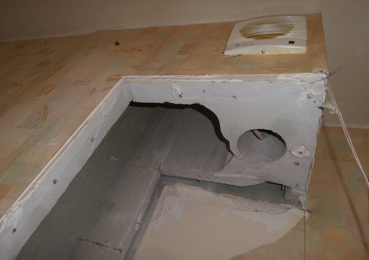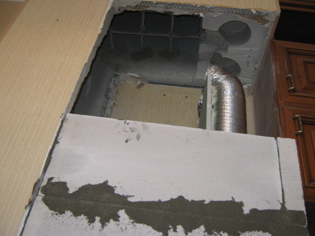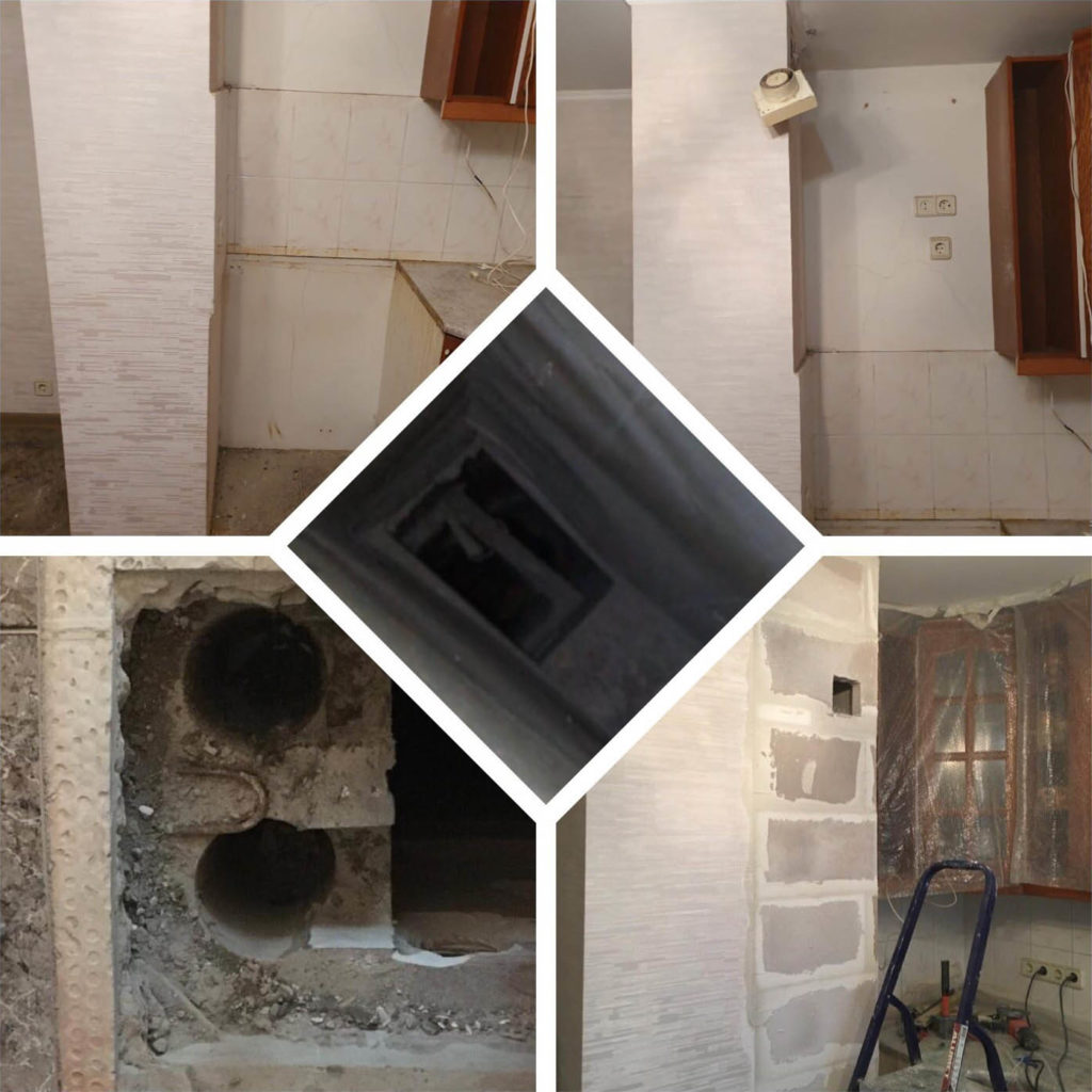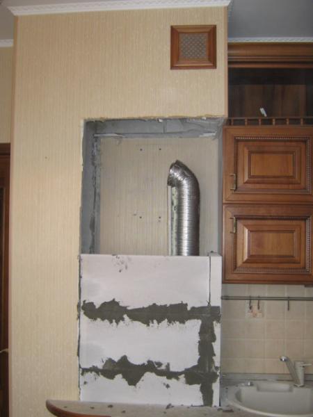 C'est par ces travaux que toute installation de la hotte dans la cuisine devrait commencer. S'il y a un problème avec la mine, aucun des systèmes les plus modernes et les plus puissants n'améliorera la qualité de l'air dans la pièce. Si vous installez une hotte dans une nouvelle maison, il peut y avoir une violation de la fonctionnalité du canal vertical. Les raisons sont diverses, mais il s'agit le plus souvent d'écarts flagrants par rapport aux codes et règlements du bâtiment. Il n'y a pas de ventilation naturelle - appelez les représentants de l'entreprise de construction pour résoudre le problème. Dans notre cas, le passage de ventilation a été obstrué par du mortier lors de travaux de maçonnerie.