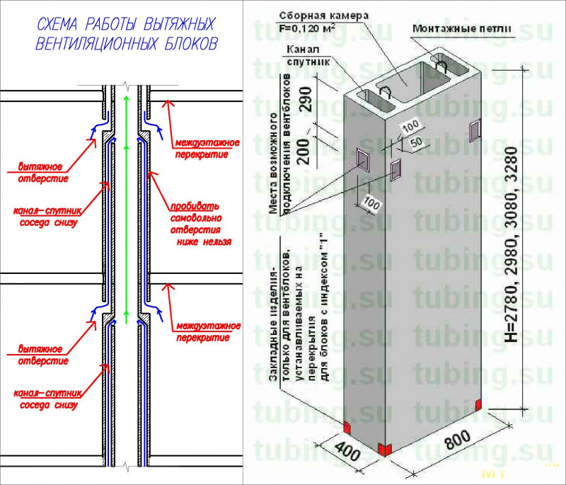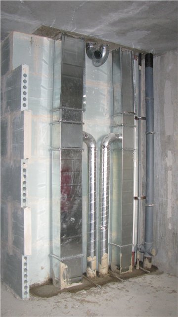 La mine commence au sous-sol et se termine sur le toit, d'où sortent les courants d'air. Vous devez comprendre que les dimensions de la gaine de ventilation dans un bâtiment à plusieurs étages sont de 30 cm sur 60 cm, les lignes elles-mêmes étant en métal ou en plastique. Ce choix de matériaux est dû au fait qu'ils sont assez faciles à nettoyer et qu'ils durent longtemps.