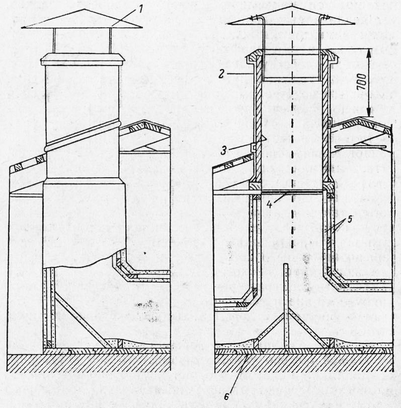 Le chemin de sortie de la ventilation vers le toit et le passage à travers le toit s'effectuent à partir d'échappement et d'autres canaux de circulation d'air dans le bâtiment.