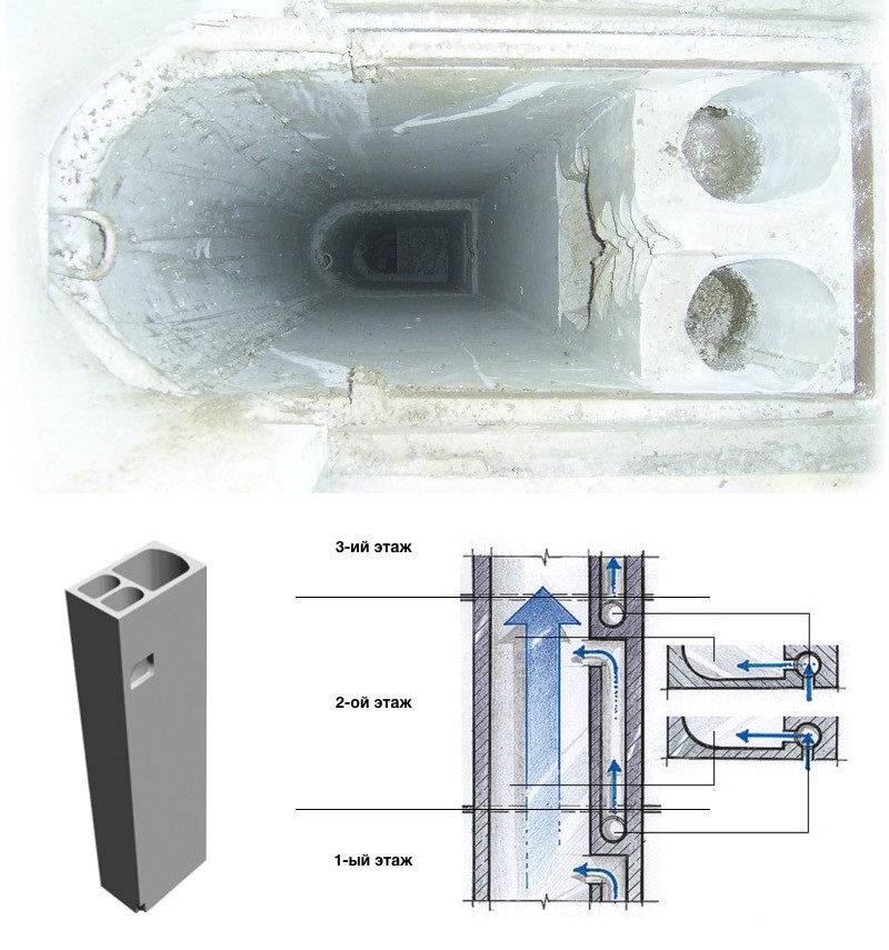 Dans les maisons à panneaux, les puits de ventilation sont des blocs de béton qui sont installés les uns sur les autres. Pour que le dispositif de gaine de ventilation fonctionne vraiment, il faut réaliser un canal parfaitement vertical.