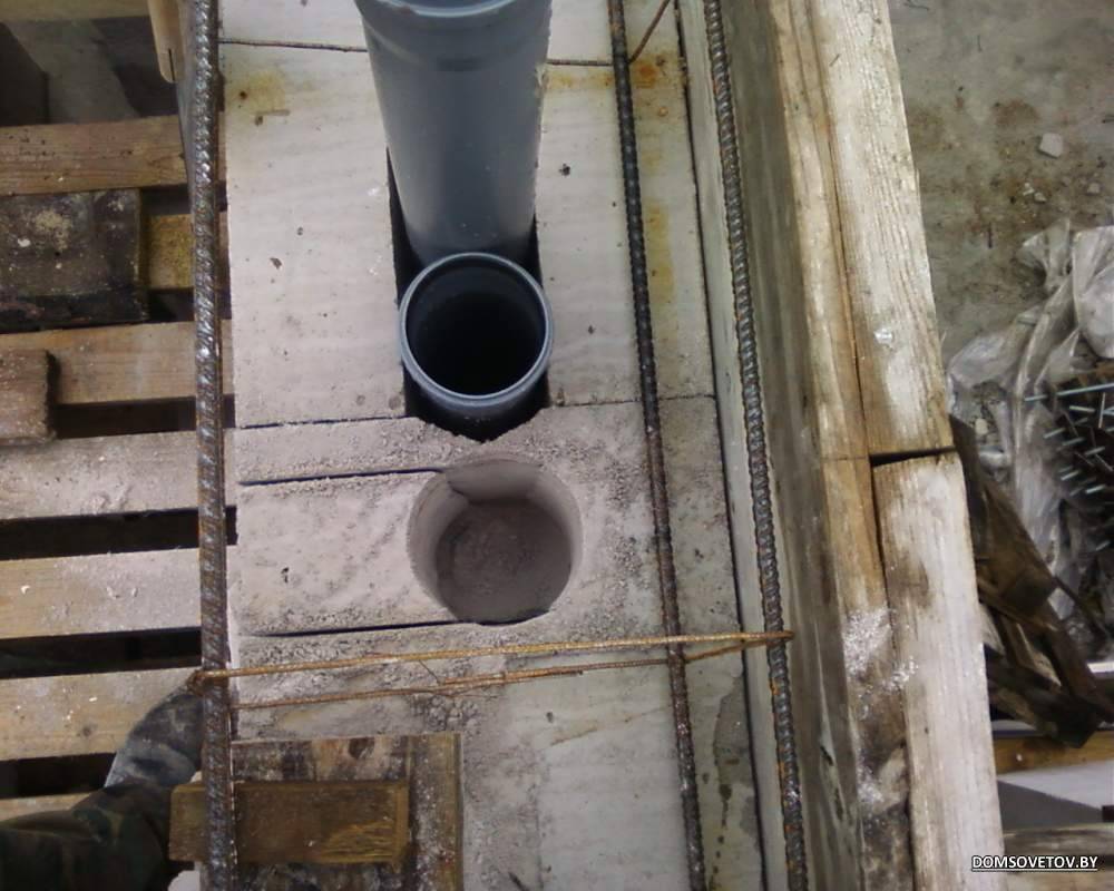 Sur un matériau en béton armé, les nœuds du passage à travers le toit sont fixés avec des boulons d'ancrage. Les boulons eux-mêmes sont placés dans des "lunettes" pendant le processus d'installation. Il est également nécessaire d'utiliser des plaques perforées, conçues spécifiquement pour le passage de la ventilation à travers le toit. Si la largeur de l'ouverture ne correspond pas à une dalle pleine nervurée ou creuse, des places en béton monolithique sont aménagées dans les zones de passage.