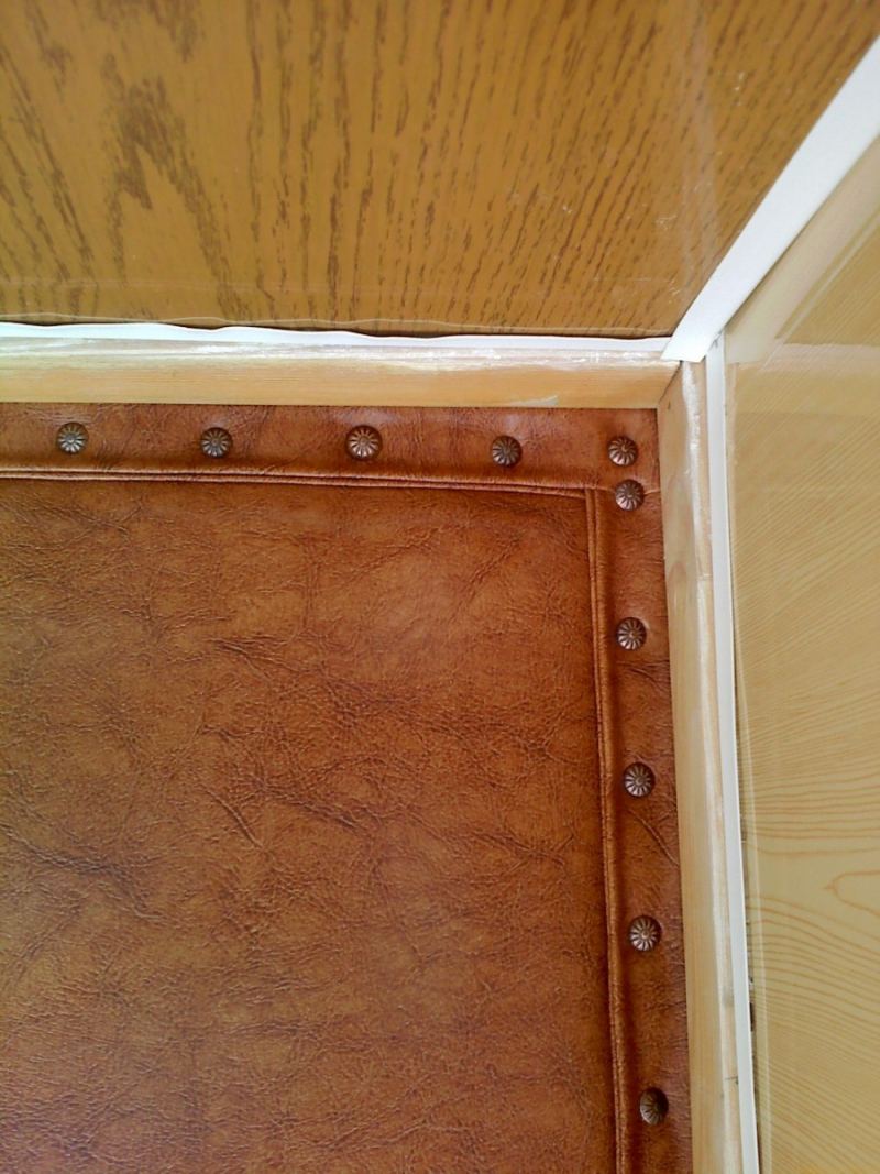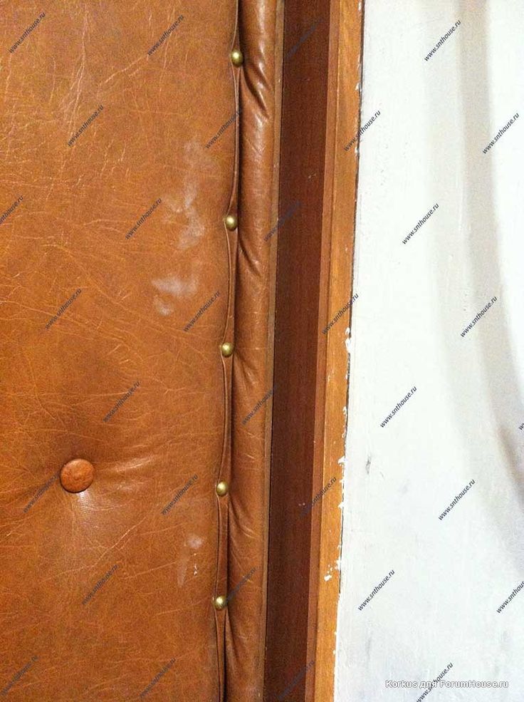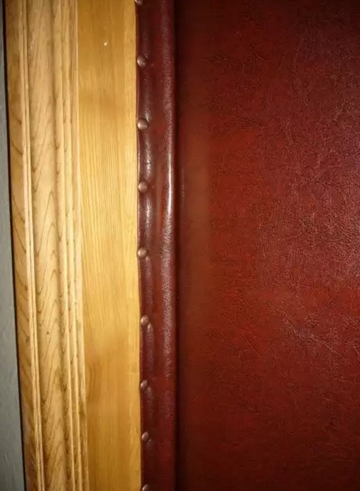 - Coupez l'isolant des portes en bois à la bonne taille et recouvrez-le de similicuir. Vous pouvez les connecter avec de la colle ou "souder" avec un couteau chaud.