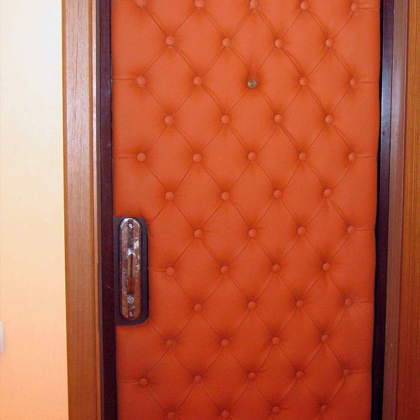 Vous pouvez recouvrir la porte de similicuir à la fois de l'intérieur et de l'extérieur.De plus, la toile intérieure peut être décorée avec un panneau MDF laminé. La couleur du matériau peut être choisie comme vous le souhaitez. La toile est fixée avec des vis autotaraudeuses, autour du périmètre
