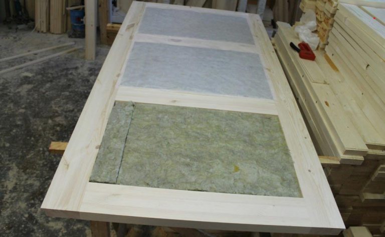Lors du choix de l'isolant, ne le faites pas trop épais, sinon votre construction aura l'air moche et mal fermée. Une isolation très dense et lourde augmentera le poids du vantail et peut entraîner un biais.