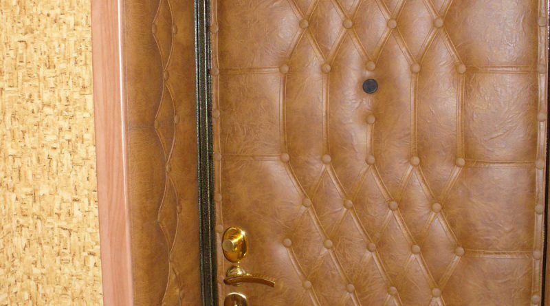 Vous pouvez coller de minces panneaux de mousse sur le vantail de la porte sans faire de cadre. Pour la finition décorative, utilisez du cuir artificiel.