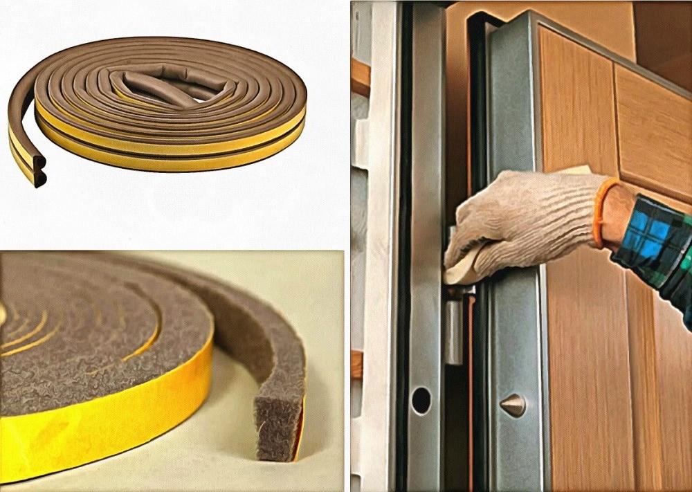 Si vous avez besoin d'une structure isolée, vous devez d'abord éliminer toutes les fissures par lesquelles l'air froid peut pénétrer dans l'appartement (voir Que faire s'il souffle par la porte d'entrée). Le moyen le plus simple consiste à installer un joint en caoutchouc adhésif en usine, en choisissant le profil et l'épaisseur souhaités.