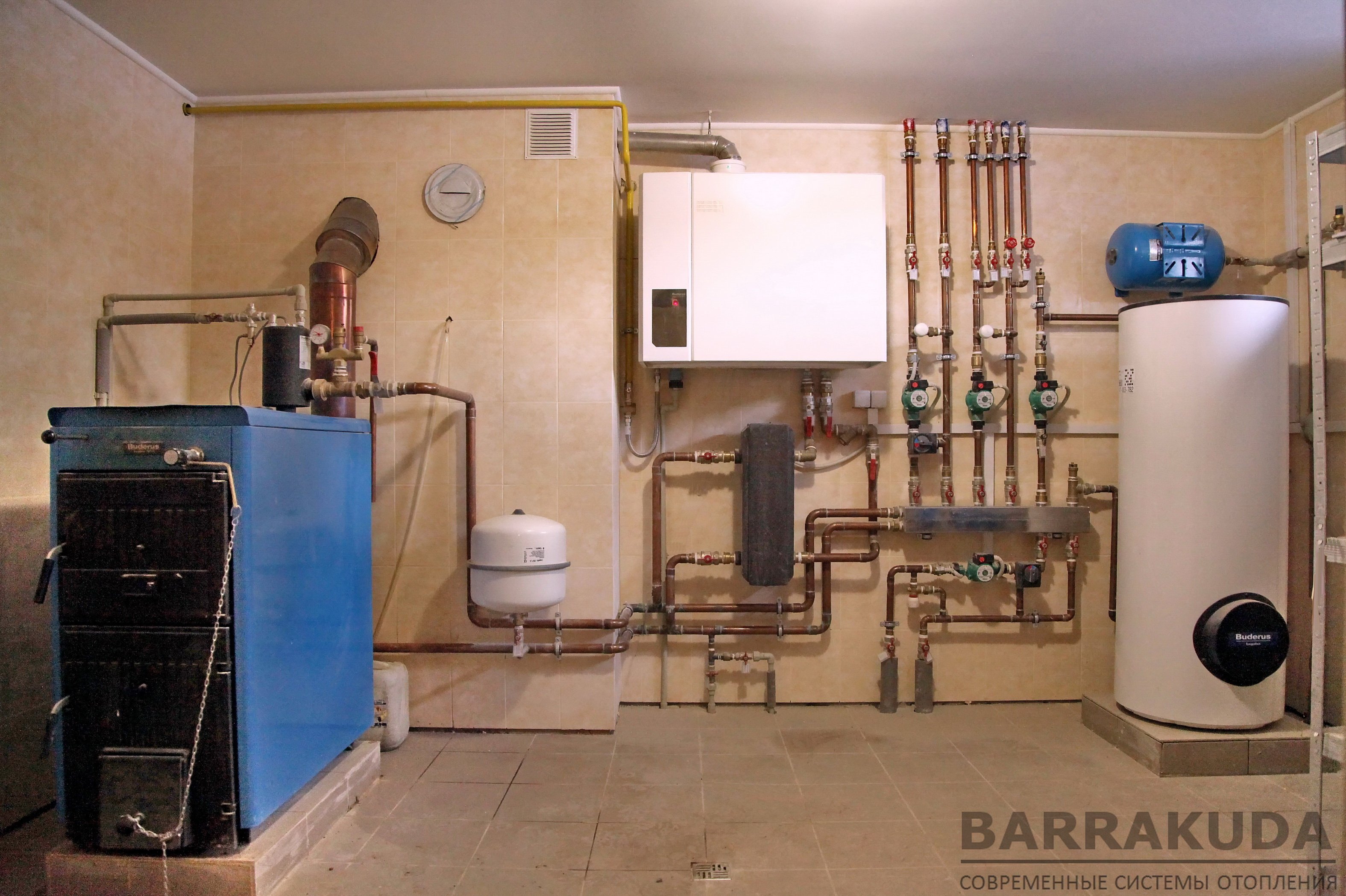 S'il y a des escaliers menant au deuxième étage de la maison, les propriétaires souhaitent souvent placer la chaudière sous les escaliers ou dans cette pièce. En termes de volume, cela passe généralement, et la ventilation devra être rendue très puissante - le volume est considéré comme étant à deux niveaux et il faut assurer son triple échange. Cela nécessitera plusieurs tuyaux (trois ou plus) d'une très grande section (au moins 200 mm).