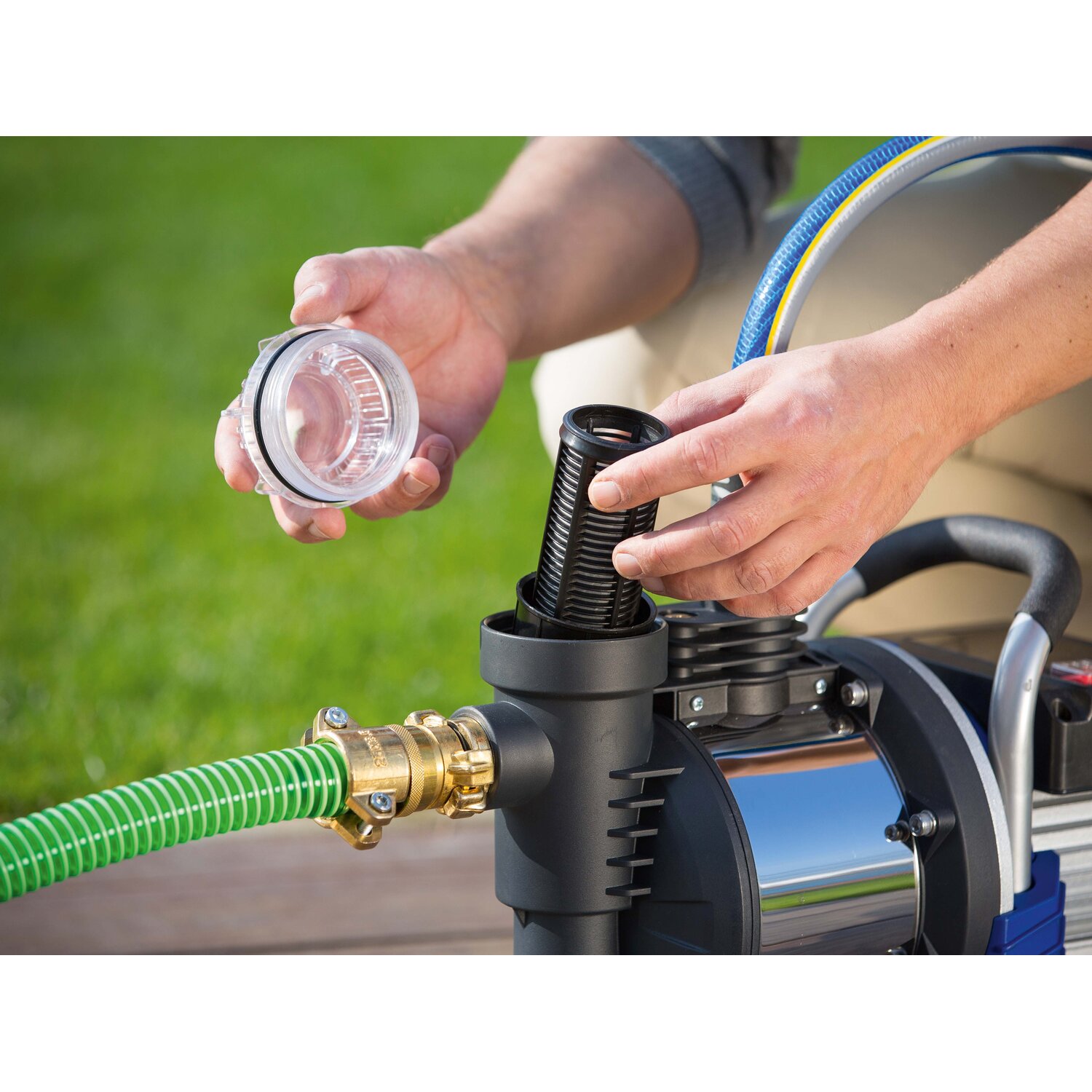 Parmi les pompes de jardin, il existe des modèles submersibles et de surface (auto-amorçants).