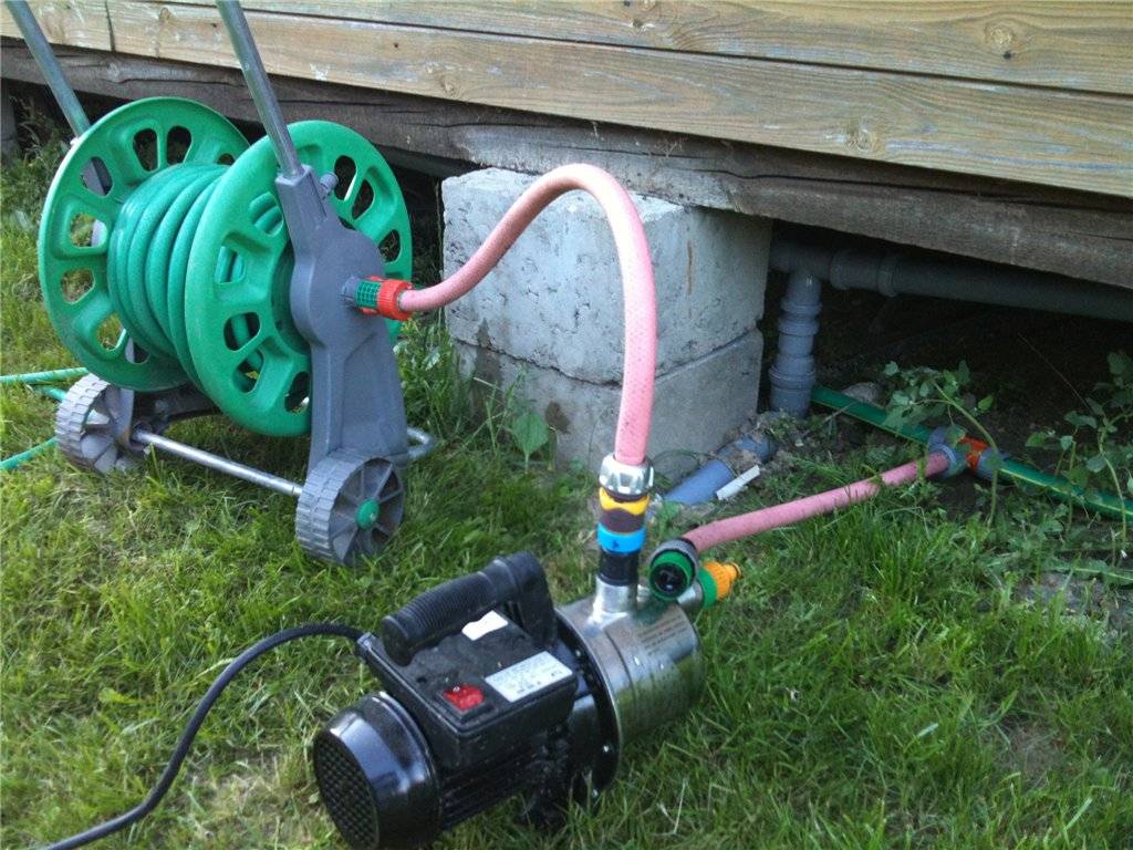 De nombreux résidents d'été utilisent deux pompes à la fois: une submersible pour soulever l'eau d'un puits ou d'un puits et remplir des conteneurs, et la seconde surface directement pour l'irrigation.