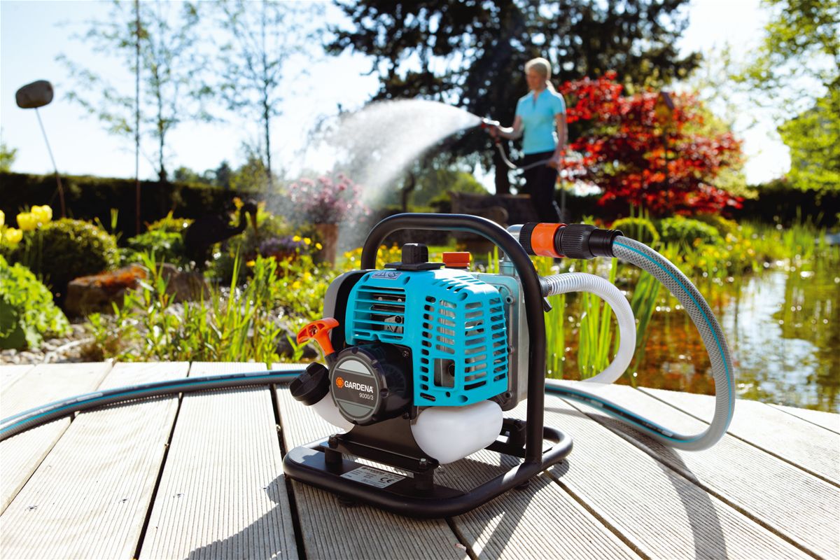 Pompe de jardin 3000/4 (Gardena). La poignée ergonomique le rend facile à transporter.