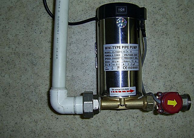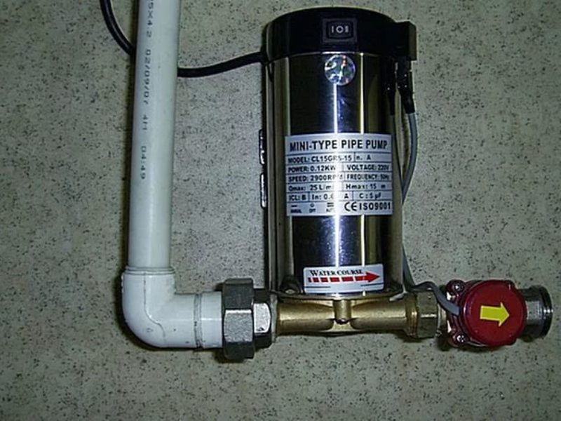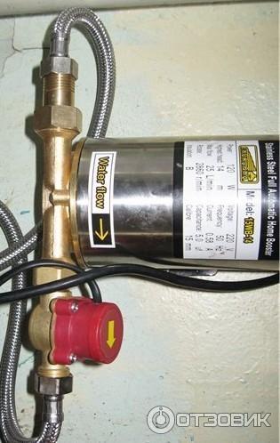 Un dispositif d'augmentation est monté, alors qu'il faut suivre les instructions de la flèche sur le corps de l'appareil, indiquant le sens d'écoulement de l'eau.