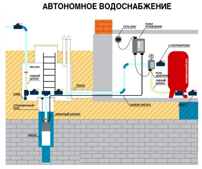 La station de pompage se compose de la pompe elle-même, d'un accumulateur hydraulique et d'une automatisation. Un accumulateur hydraulique est nécessaire pour accumuler les réserves d'eau afin que la pompe ne se mette pas en marche à chaque ouverture du robinet d'eau. L'automatisation, à son tour, régule le fonctionnement de la pompe et ne l'active que lorsque la pression chute. Pour le fonctionnement stable de la station de pompage, il est nécessaire que vous disposiez d'une alimentation électrique ininterrompue.