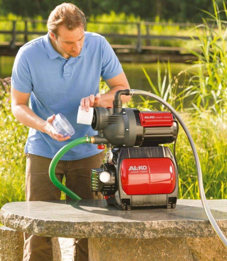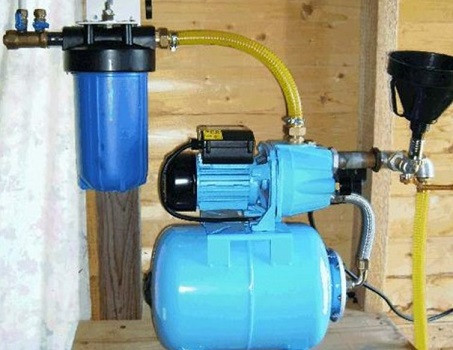 Après avoir connecté la pompe au système d'alimentation en eau, le filtre intégré ou la tête de remplissage de l'appareil est rempli d'eau, le raccord de sortie est enveloppé. Ceci prépare les stations pour le fonctionnement.