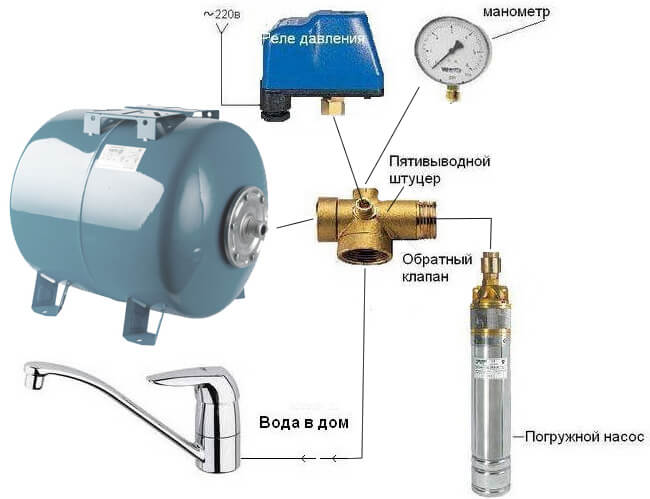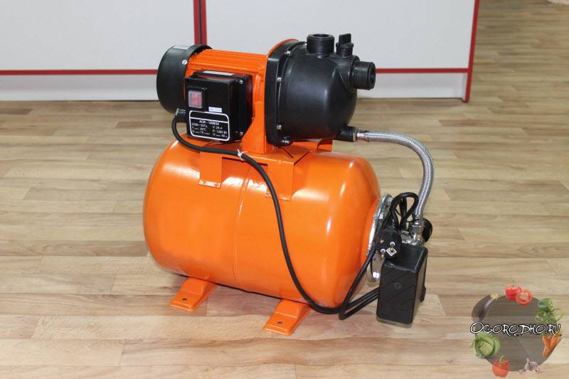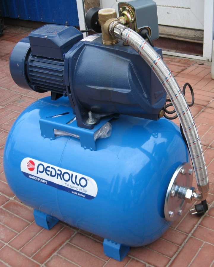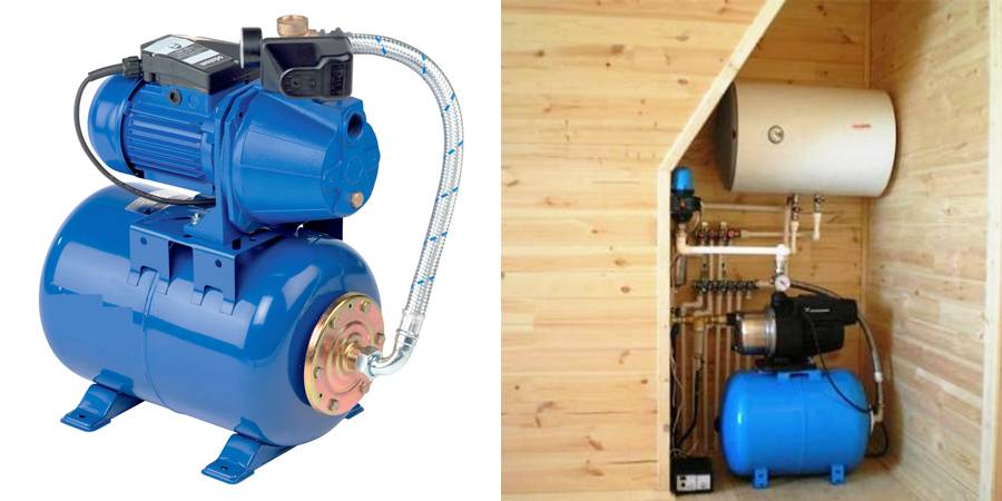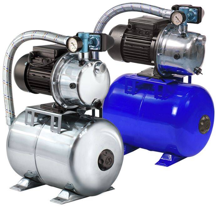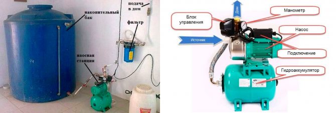 La base d'une station de pompage est une pompe de n'importe quel système, mais le plus souvent de type centrifuge. Son fonctionnement est contrôlé par des capteurs de pression et un accumulateur hydraulique équipé d'une membrane élastique qui réagit aux variations de volume d'eau (+)