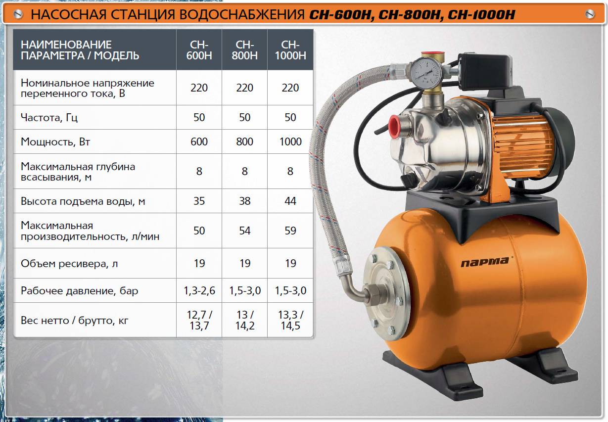 La puissance de travail du moteur est de 400 W, le volume de l'accumulateur est de 19 litres. Les performances de la station de pompage sont suffisantes pour assurer un approvisionnement stable de 40 litres d'eau par minute.