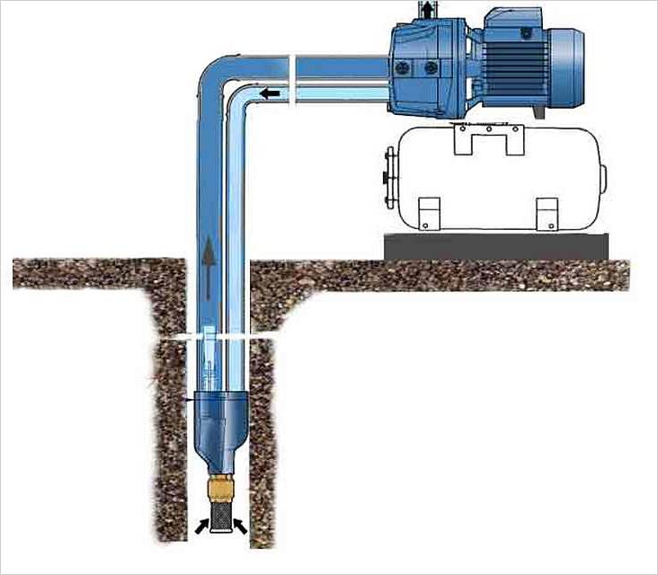 Une station avec un éjecteur à distance peut être installée dans la maison, car la pompe, qui crée le bruit principal, est descendue dans un puits ou un puits. Deux tuyaux y sont reliés: un à un, l'eau descend, créant une pression qui, à son tour, entraîne l'émergence d'un jet d'aspiration dans le deuxième tuyau. Le puits à partir duquel la pompe pompe l'eau peut être à 20 voire 40 mètres du bâtiment résidentiel.