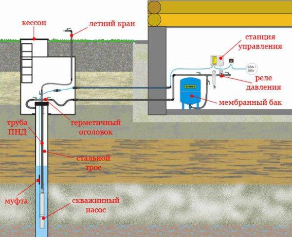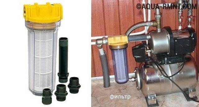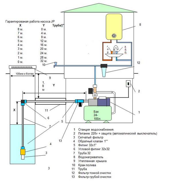 Un point important est que la profondeur du puits ne doit pas dépasser 10 mètres, car toutes les pompes de surface ont une faible puissance. Le plus souvent, les eaux souterraines se trouvent à cette profondeur, ce qui accumule les substances nocives des fosses septiques voisines. Les engrais minéraux sont également emportés par les pluies dans ces réservoirs, de sorte que des filtres supplémentaires sont placés devant l'entrée de la maison.