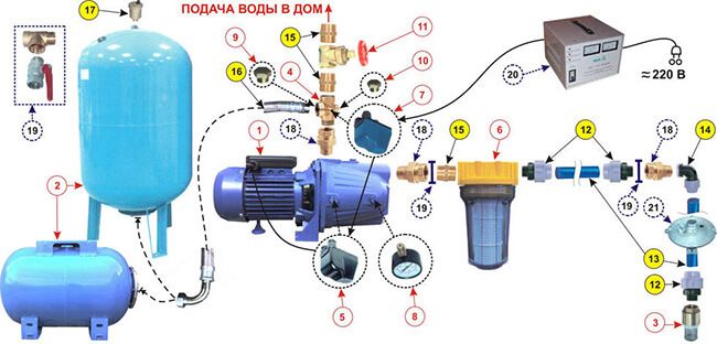 La tâche de la station de pompage est d'assurer un approvisionnement constant en eau de la maison à un niveau de pression suffisamment élevé dans le système d'alimentation en eau