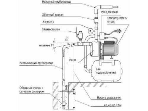 Un autre avantage de l'utilisation d'une station de pompage est la possibilité de pomper l'eau d'un puits de très petit diamètre en y abaissant un tuyau de 2,5 cm.Cette circonstance est particulièrement importante dans un chalet d'été, car il n'est pas nécessaire d'équiper un grand puits artésien.