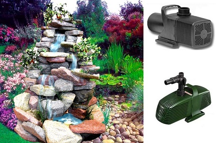 - Les pompes d'une fontaine dans le pays peuvent être utilisées, entre autres, pour alimenter en eau une cascade artificielle. Si la puissance de l'appareil est suffisante, un té doit être installé sur le tuyau, ce qui permettra d'alimenter en liquide deux objets en même temps.