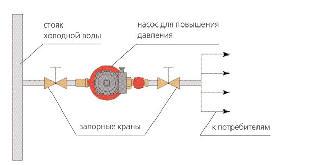 L'installation d'une pompe pour augmenter la pression dans l'alimentation en eau d'un appartement ou d'une maison privée s'effectue dans l'ordre suivant: