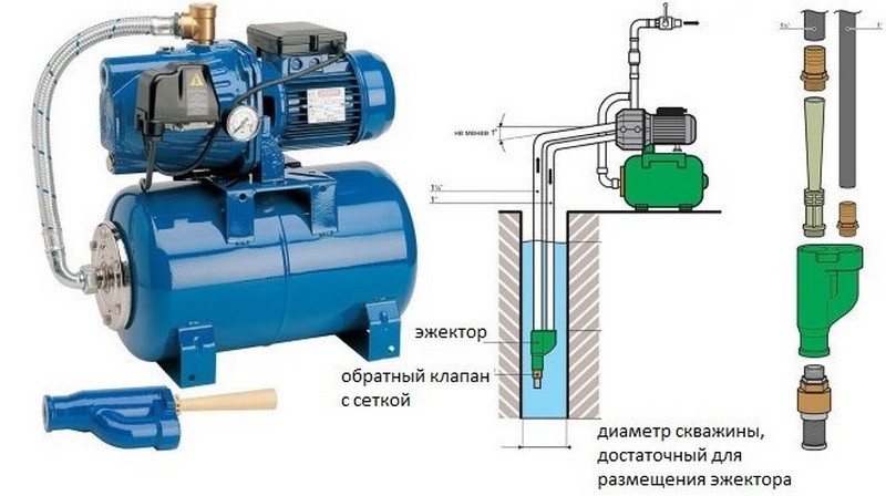 Parmi les stations de pompage, on distingue la station de surpression danoise "Grundfos MQ3-35" à contrôle automatique. La profondeur d'aspiration atteint 8 mètres, la pression est de 34 mètres et le débit est de 3,9 mètres cubes par heure. La station est équipée d'une pompe auto-amorçante, d'un moteur électrique et d'un accumulateur hydraulique.