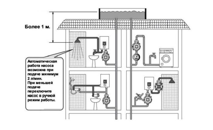 Pompes pour augmenter la pression de l'eau: types, comment choisir, technologie d'installation + schémas de connexion