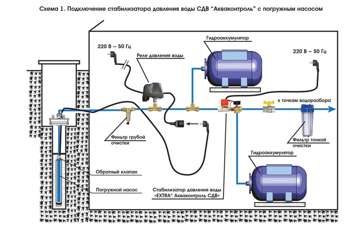 La pression est le critère déterminant pour l'indicateur de la distance au point de consommation d'eau et la profondeur d'immersion de l'unité, généralement 1 m équivaut au même 1 m d'une colonne verticale et 10 m horizontalement. Si le puits est situé à une grande profondeur ou si la distance à la maison est grande, la pression créée par une pompe électrique de faible puissance (erreurs dans les calculs lors du choix, diminution des performances pendant le fonctionnement, impossibilité de remplacer une pompe usée- unité par une nouvelle) n'est pas toujours suffisante pour transporter un volume d'eau acceptable par unité de temps pour la distance requise. Dans cette situation, une pompe électrique de surpression peut être installée sur la ligne externe.