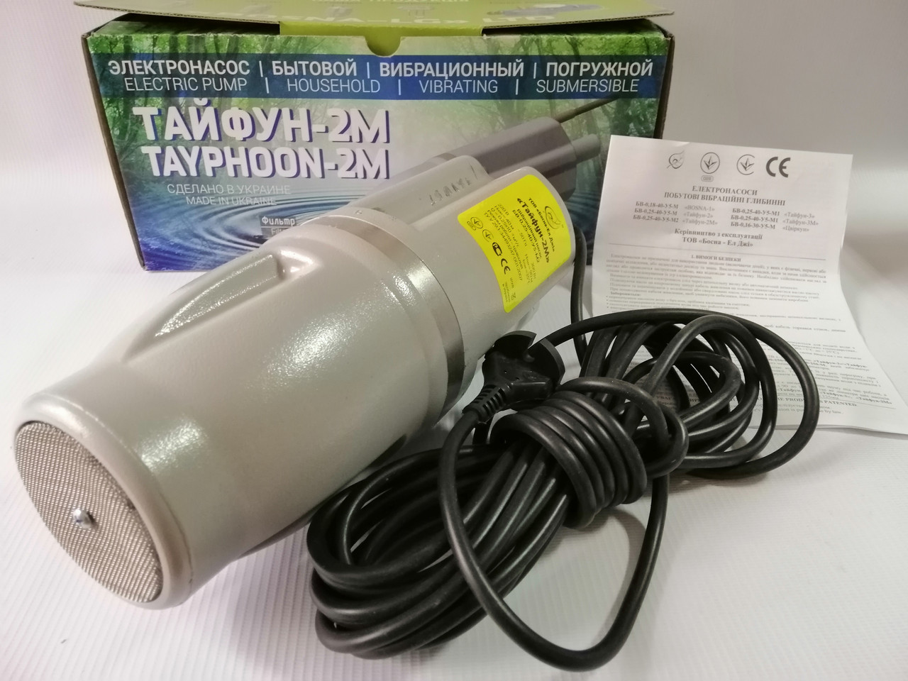 De toute la gamme de pompes vibrantes Typhoon fabriquées par l'entreprise, la plus populaire est Typhoon-2, qui, avec une puissance de 250 watts, peut fournir de l'eau à une profondeur de 90 mètres!