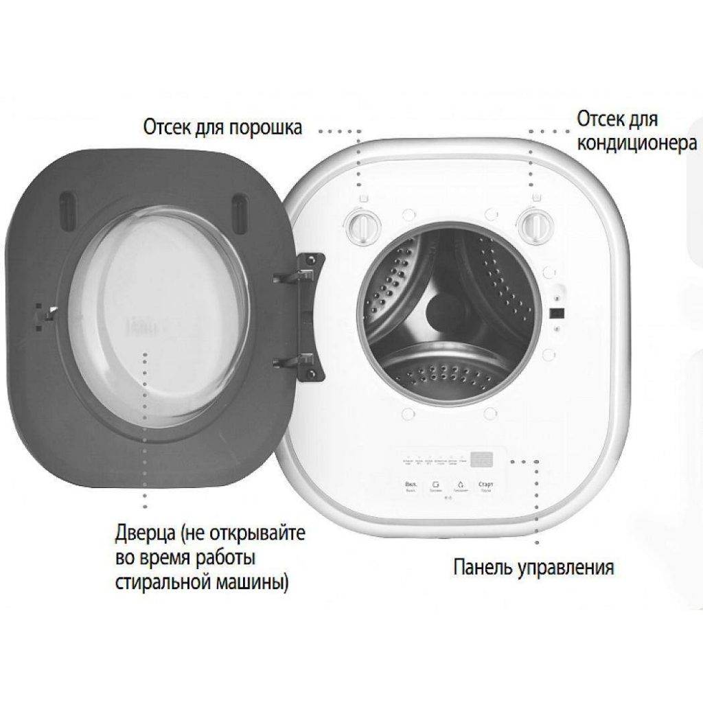 La machine à laver miniature à chargement frontal, grâce à sa faible hauteur de 70 cm, peut être installée sous l'évier.La trappe de chargement d'un diamètre de 30 cm vous permet de mettre de gros articles dans le tambour, y compris des vêtements d'extérieur.