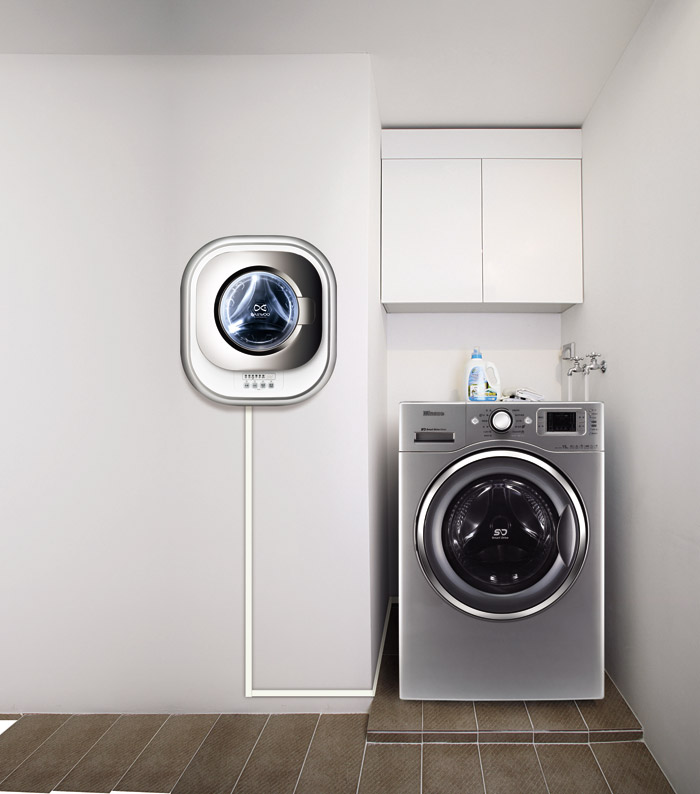 Cette unité de lavage ne pouvait même pas imaginer qu'elle puisse remplacer une machine à laver. La structure de lavage murale était conçue comme un appareil supplémentaire pour le lavage, il était possible de simplement rafraîchir les choses de tous les jours, ce modèle est très silencieux et assez économique que les machines conventionnelles. Après tout, pour laver la chemise que vous portez tous les jours, vous pouvez simplement la rafraîchir et ne pas démarrer le processus de lavage principal.