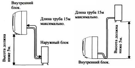 Pour que le processus commence et se termine à temps, une certaine longueur de pipeline est nécessaire - c'est pourquoi il est important de prendre en compte les exigences de longueur établies par les développeurs de l'équipement. Avec appareil et principe fonctionnement d'un climatiseur typique compris, et maintenant nous nous tournons vers les règles et règlements pour l'installation de ses blocs