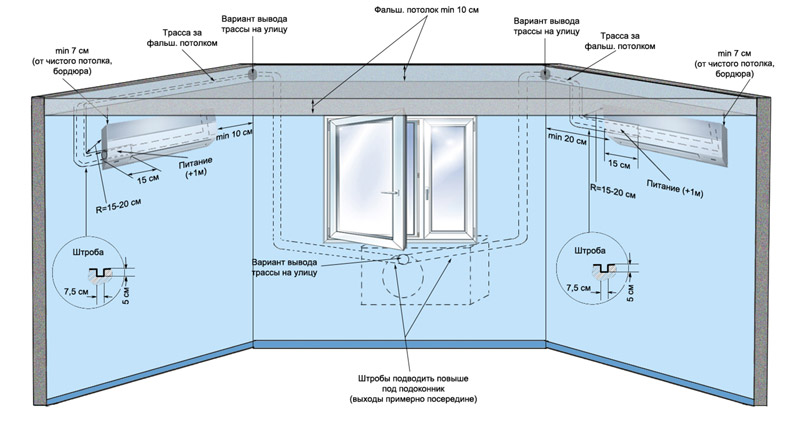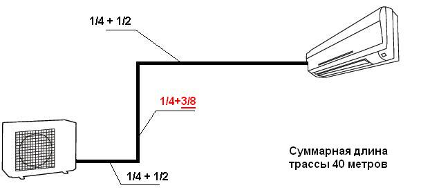 L'installation normale d'un climatiseur dans une pièce implique une petite longueur du trajet du fréon entre les unités du système split. En moyenne, cette valeur est de 5 à 10 mètres.