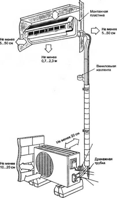 Distance nécessaire entre les climatiseurs : règles et réglementations de base pour l'installationUne ligne est posée entre le module intérieur et extérieur, à travers laquelle le réfrigérant circule. Il s'agit d'un système fermé de tubes en cuivre remplis de fréon.