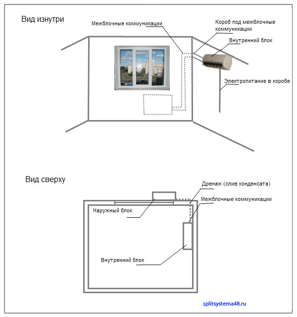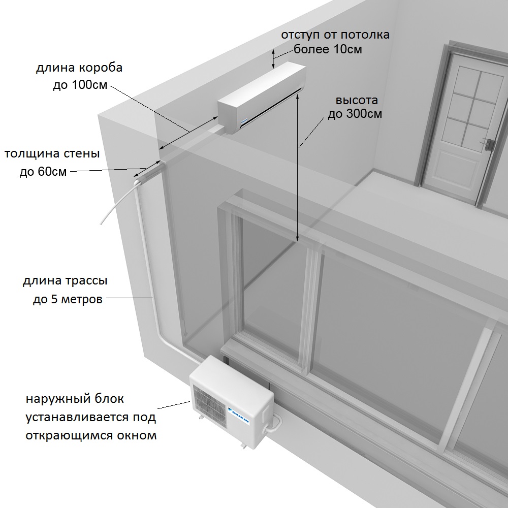 L'installation à l'intérieur d'un balcon couvert est extrêmement indésirable en raison de la convection insuffisante du flux d'air, qui est si nécessaire pour l'élément externe du système divisé.