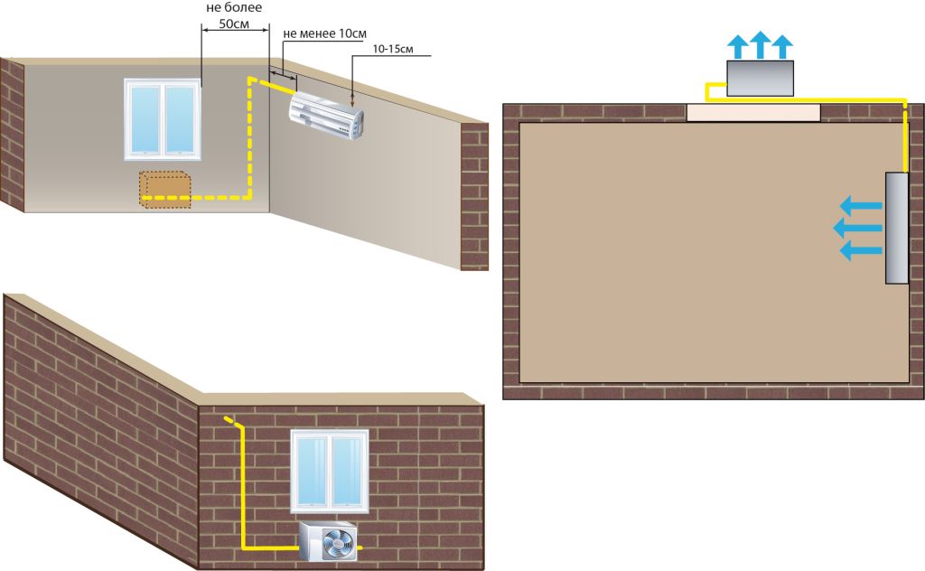 La condition principale est que l'équipement climatique ne crée pas d'obstacles au fonctionnement du système de ventilation principal. Leur travail est un fonctionnement harmonieux et complémentaire.