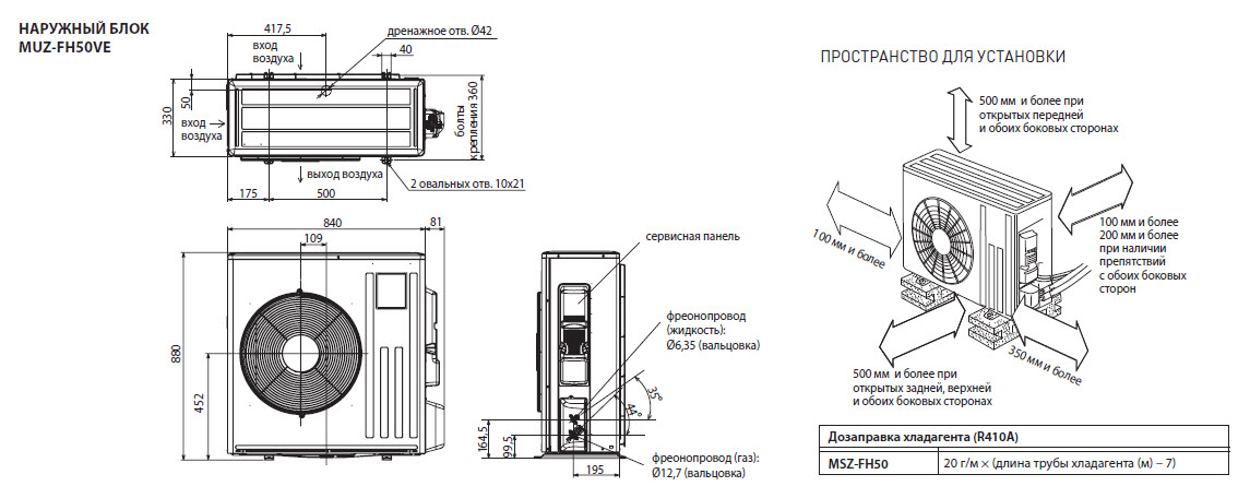 - installation du boitier (externe ou interne) ; - raccordement de tuyaux en cuivre pour le réfrigérant et les fils électriques ; - élimination de l'air et de l'humidité du système - vide. Durée à partir de 45 minutes, un équipement spécial est utilisé.